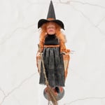 ~ Autumn features a hand-painted face with tousled orange hair and orange painted nails. She wears a classic, pointed black witch hat, ready for Halloween.