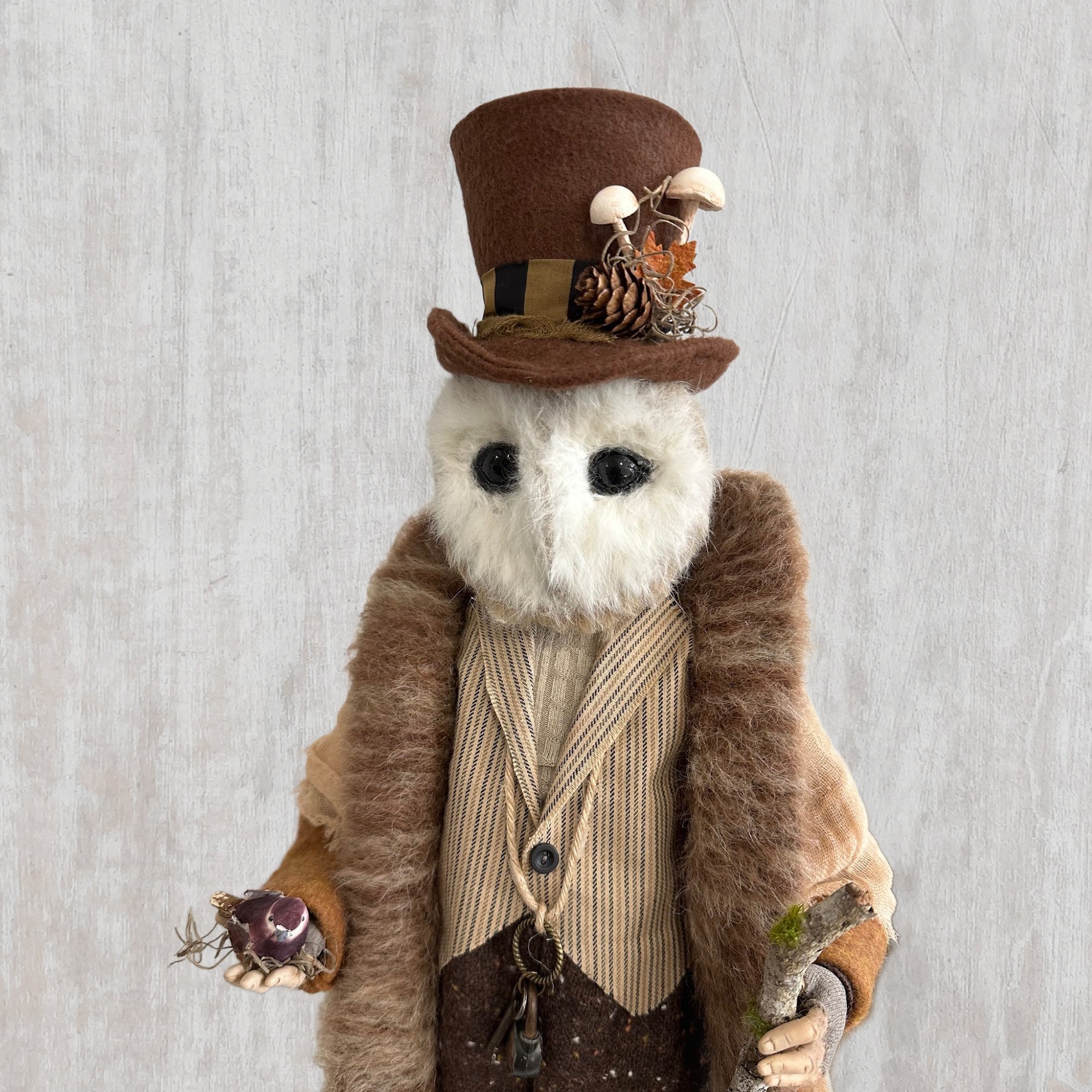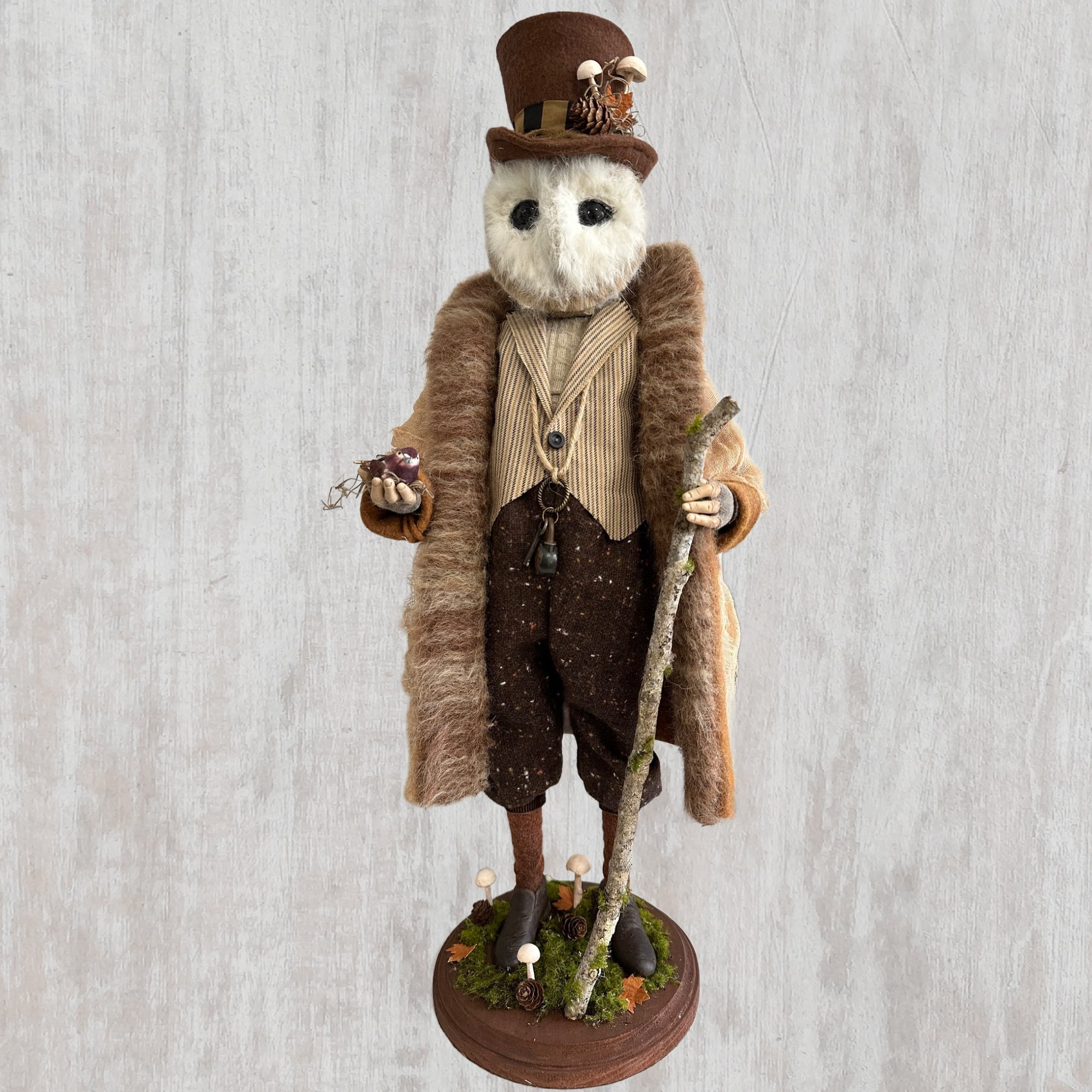 Meet Hoot, a dapper anthropomorphic owl, perfectly costumed for his nightly strolls through the enchanted woods. As one of my larger pieces, sculpted and flockedHoot brings a level of whimsy to your collection and ready to impart a bit of woodland magic into your home. Measures approximately 22” tall.